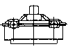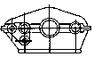 單級三環(huán)傳動(dòng),二高速軸位于低速軸兩側(cè),各軸豎置,箱體平置座裝。 |