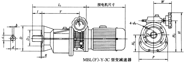 當前位置:減速機首頁 >> 產品大全 >> 組合減速機 >> 無級變速器與齒輪減速器組合Q/ZTB01-2001 >> MBL(F)-Y-3C型變減速機主要尺寸Q/ZTB01-2001 |