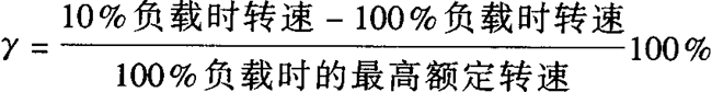 配有控制裝置的調速電動機的轉速-轉矩特性曲線,如圖2所示。按照控制器的轉速變化率定義是當電動機自10%負載到額定負載范圍內變動時,控制裝置能根據測速發電機信號自動調整勵磁,使輸出轉速基本上維持恒定。用以表征轉速-轉矩曲線的參數是轉速變化率γ 其定義為