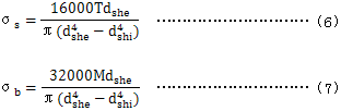 軸的名義應力按以下公式計算。公式(6)與公式(7)可應用于薄壁軸的設計,這里比值dshi/dshe<0.9是不允許的。