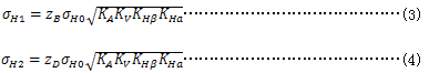 小輪和大輪的計算接觸應力σH1,σH2分別按下述兩式確定: