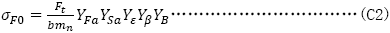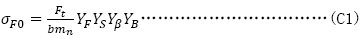 在薄輪緣齒輪根應力基本值計算時,應增加一項輪緣系數YB,用以考慮輪緣齒高比mB對齒根彎曲應力的影響。即對用方法一[見4.2.2a]計算σF0時,本標準中式(12)應改寫成