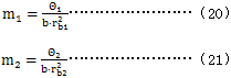 其中m1 ,m2分別表示小輪及大輪化到嚙合線上的單位齒寬當量質量,kg/mm。