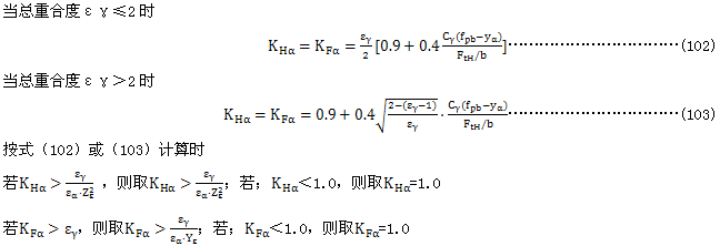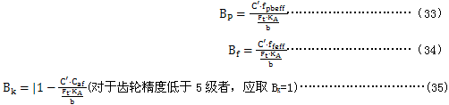 但對于斜齒輪,如計算得的KHa值過大,則應調整設計參數,使得KHa及KFa不大于εao同時,式(102)和(103)僅適用于齒輪基節偏差在圓周方向呈正常分布的情況。