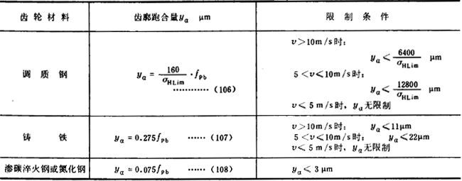 ②當大、小齒輪的材料和熱處理不同時,其齒廓跑合量可取為相應兩種材料齒輪副跑合量的算術平均值。