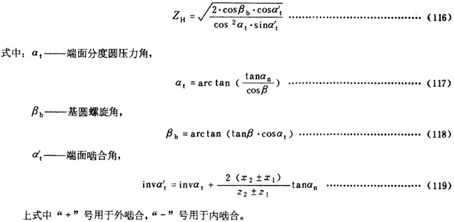 節點區域系數ZH是考慮節點處齒離曲率對接觸應力的影響,并將分度圓上切向力折算為節圓上法向力的系數。