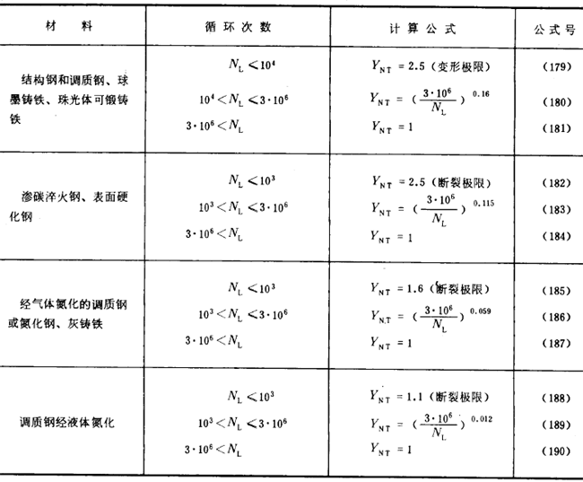 3.20有限壽命計算時的ZN·ZL·ZV·ZR·ZW及YNT·YδrelT·YRrelT ·YX值
