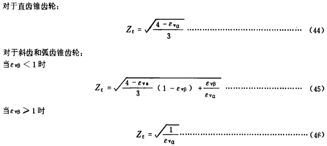 重合度系數Zε是考慮重合度對單位齒寬載荷影響的系數。其值可按式(44)、(45)、(46)計算或由圖6查取。