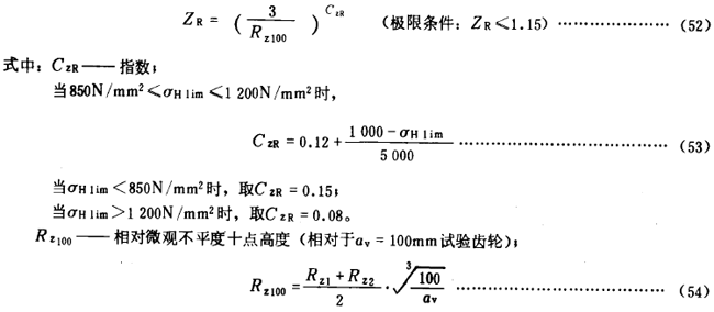齒面粗糙度——其影響以粗糙度系數ZR考慮。