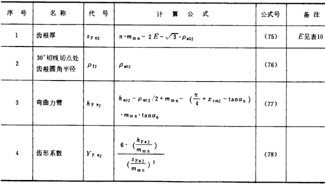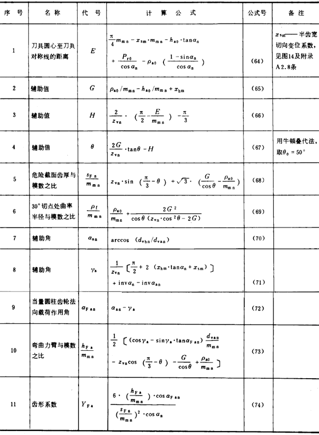 表11成型法加工齒輪齒形系數YFa2的有關公式