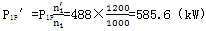 按i=4.5及n1′=1200r/min接近公稱轉速n1=1000r/min,并要求P1C<P1P′,查表2-9ZDY280,當i=4.5,n1=1000r/min時,P1P=488 kW,當n1′=1200r/min時,折算公稱功率