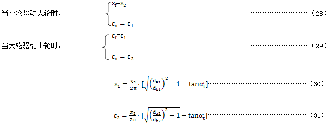 重合度系數Kε是考慮在忽略載荷分配時,將小輪齒頂的閃溫值轉換為沿嚙合線閃溫平均值的系數。重合度系數可以用齒高重合度ε1與ε2以及它們的和εa來表示。Xε的公式是基于假定沿嚙合線的閃溫是線性分布的。這種方法的可能誤差將不會超過5%,且偏于安全。