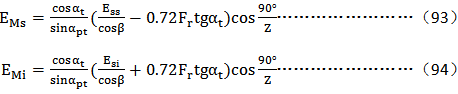 對量柱測量齒距(M值)偏差的測量結果ΔEM應用設計圖樣規定的量柱測量距極限偏差EMs、EMi對其進行評定。當設計圖樣未作規定時,應將圖樣規定的齒厚極限偏差Ess、Esi按公試(91)、(92),(93),(94)換算為EMs、EMi;也可以將測得的ΔEM按公試(95),(96)(97),(98)換算為ΔEss、ΔEsi,用Ess、Esi對其進行評定。