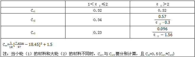 根據式(42)和式(43)的限制值,假定載荷最不利的分布為整個切向載荷僅用一對嚙合輪齒傳遞。