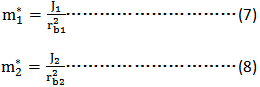 m1*,m2*——小輪及大輪轉化到嚙合線上的單位齒寬當量質量,kg/mm;