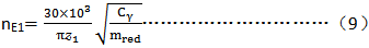 由于軸、軸承、箱體等的剛度及相應的阻尼未考慮,因此,臨界轉速可能高于或低于由式(9)計算的值。為安全起見,臨界區域的界際為: