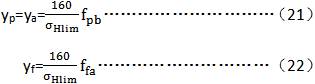 fpbeff、fpaeff——分別為有效基圓齒距偏差和有效齒廓形狀偏差,μm;fpbeff和fpaeff為跑合后的值,根據相應的跑合量yp和yf(μm)確定: