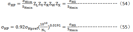根據GB/T3480(或ISO6336-5),σHlim是在循環次數NL=5×107時得出的,高速齒輪的循環次數可能超過這個值.當NL≤5×107時,可按式(54)計算σHP;當NL>5×107時,在給出合適的條件(材料、制造)和有使用經驗時,仍可按式(54)計算σHP,滯則,由式(55)計算σHP。