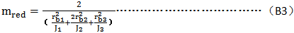 此時,假定內齒圈的質量為無窮大,因此,誘導質量等于行星齒傳輸線的當量質量,mred由式(B2)確定: