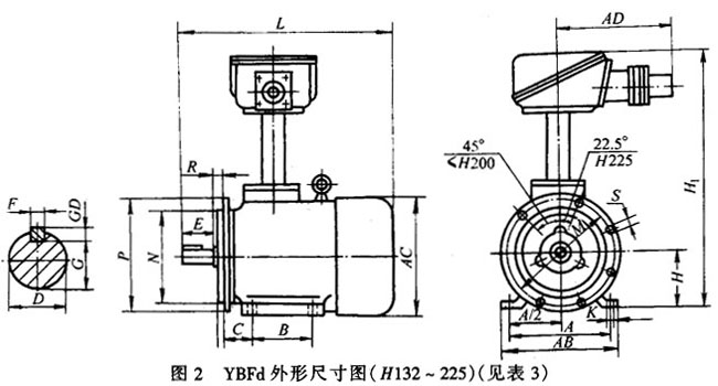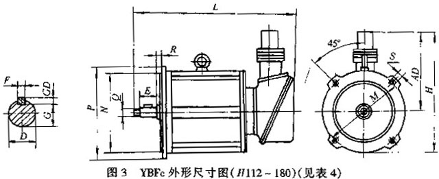 YBF系列風(fēng)機用隔爆型三相異步電動機外形尺寸 |
