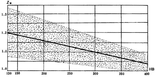 對于鋼對鋼配對的齒輪副,常系數(shù)值Aa,Ab見表B1,對于非鋼對鋼配對的齒輪副,需將表B1中值乘以修正系數(shù),修正系數(shù)數(shù)列于表B2。