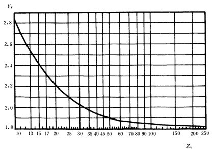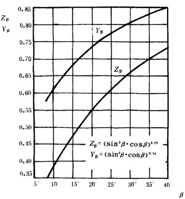 螺旋角系數(shù)是考慮螺旋角影響齒面相對(duì)曲率半徑,從面影響輪齒應(yīng)力的系數(shù)。其值可按圖5查取,或按圖中公式計(jì)算。