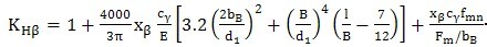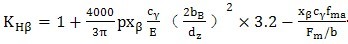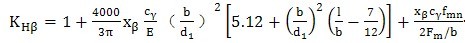 4)完全螺旋線修形(補償彎曲和扭轉變形)的與3)相同的齒輪副,KHβ按式(46)確定。