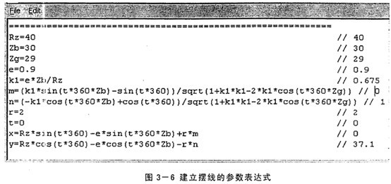 參照上述的擺線輪齒廓形狀曲線表達式,在UG中建立的擺線的參數表達式見下圖: