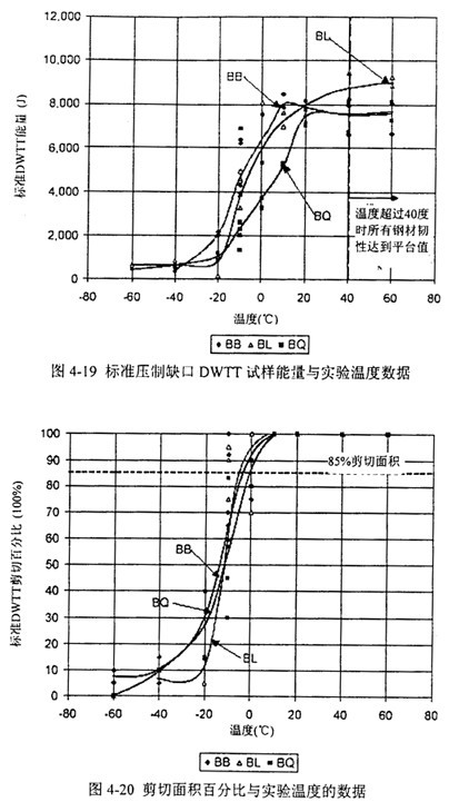 表4-4給出了這些DWTT實驗的特征值和85%剪切面積對應的轉變溫度。