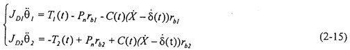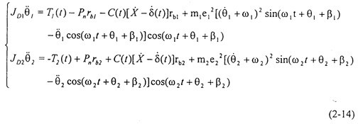 當只考慮齒輪扭轉振動而不考慮齒輪及軸的橫向振動時,以往研究都沒有考慮到齒輪偏心質量對齒輪扭轉振動的影響,實際上這個影響是存在的。不考慮齒側間隙時,Pn。2-2)式,代入式(2-13)可得單級齒輪系統帶偏心質量的振動微分方程: