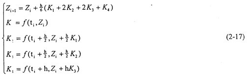 由于上式是一個非線性時變方程組,它的理論解無法得出,故采用數值解法求解。為了便于計算,將方程組(2-15)轉化到狀態空間中,將方程組表達成: