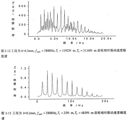 圖2-8中,(a)圖和(b)圖分別是當齒輪嚙合頻率仍為5888Hz、但齒側間隙增加到b=0.3Omm