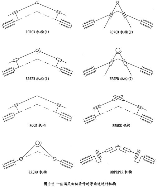 若一個機構在運轉時其位形始終具有以軸交角(輸人軸和輸出軸之間的夾角)的角平分面為鏡面的對稱性,則該機構將具有等角速性。顯然,運動副與構件均對稱于上述鏡面且含有中間副的單自由度鏡面機構是這類機構的基本型式,其運動特征是,中間運動副始終在鏡面內作平面運動。這一理論直觀地闡明了一般相交軸、交錯軸等角速連桿機構的基本型式。