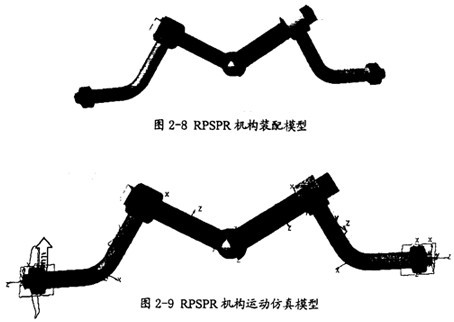 上述的理論是在鏡面機構(據現有的理論是等角速度機構)的基礎上,解出曲柄條件,得到機構等角速運動的尺寬約束關系式。為了驗證這一方法的可行性,特制作了如正氣RPSPR平面相交軸模型(如圖2-8所示),這個模型的結構左右未完全對稱(兩個移動副到球面副的距離不同)。