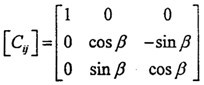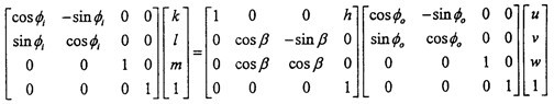 十字軸萬向聯軸器的機構實際上是球面四連桿機構,它的空間運動關系早已解析出。當輸入、輸出兩軸線的夾角為β輸入軸轉角ф