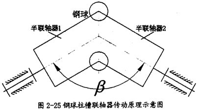 鋼球柱槽聯軸器是一種結構極為簡單且易于制造的等速聯軸器,因而具有實用價值,不過由于結構上的限制這種聯軸器兩軸間的偏轉角較小。