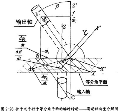 輸入軸和輸出軸的相對轉動瞬時轉軸或瞬時轉動——滑動軸位于或平行于兩軸的等分角平面。