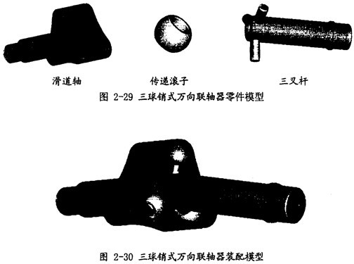 三球銷式萬向聯軸器是一種準等角速聯軸器,與其它各類等角速聯軸器相比,零件數目最少,結構簡單緊湊,無論傳動方向如何,三個銷軸全部參加工作,因此傳動扭矩能力強,工作可靠,聯軸器的相對運動件為滾動摩擦,摩擦損失小,傳動效率高。不過它的滾子同滑道的接觸是高副線接觸,傳動中接觸應力較大,在一定的程度上可能限制了它的傳輸能力。