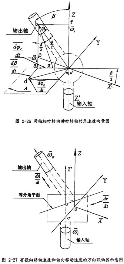 如圖2-28所示,輸入軸與輸出軸通過一個萬向聯軸器J聯接,兩軸夾角β為變量,輸出軸相對于輸入軸存在瞬時轉動——滑動軸,用矢量