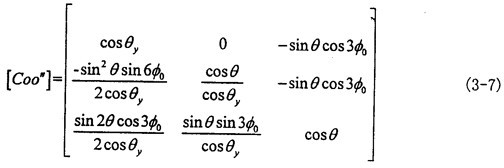 由式(3-6)可知|θy|<θ,|θx|<θ一般來說θ值非常小,則θy和θx則更小。到此方向余弦矩陣[Coo″]的所有項均可求出。其具體的形式如下(為簡化書寫將θy作為已知參數代入):