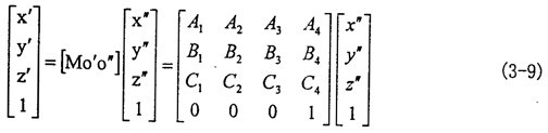 (3-7)式中A1、A2、A3、A4、B1、B2、B3、B4、C1、C2、C3、C4等于其在矩陣[Mo′o″]中對應位置的表達式。