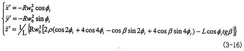 由曲線圖3-14可以看出,小桿球面中心P沿軸頸的線加速度,變化頻率為一個回轉周期2次。隨兩軸夾角β的增大其最大值增長較快,它的值可以作為動力分析和設計計算的重要依據。