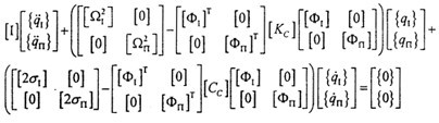 求組合系統的特征值及特征向量,然后可建立組合系統的模態模型。(不難看出,此處組合結構整體的特征值的數目由各部件的模態數來確定,而不是由它們的結構幾何坐標數確定的)