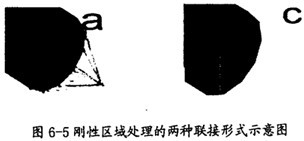 剛性區域的處理是基于小變形理論,通過這種處理,單個構件的自由模態頻率會上升,只有通過這種處理可以在ADAMS中進行模態疊加和模態綜合,得出系統的固有頻率。其處理的方法是根據構件間的不同的運動副連接形式,用點質量單元上的節點(有時物體上自己的節點也可,不一定非要再建立質量單元)和實體上相應的節點進行耦合,形成主節點和從節點關系,構成剛性區域。其連接形式如圖6-5,在此圖的連接形式中,a圖的連接形式可以傳遞所有載荷形式,是一種推薦的連接方式;c圖中主節點僅同單個從節點相連傳遞的載荷形式有限,不合適選用。