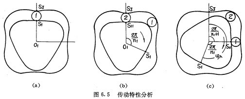 如果去掉瞬時傳動比為常數這個前提,根據運動副都作純滾動的運動方式,可設計出純滾動的非圓行星齒輪傳動機構(圖6.2)。從后面的分析可知,這種機構,相鄰兩行星輪之間的中心角是變化的,相鄰行星輪和太陽輪、內齒圈之間所包容的面積也是變化的,利用這一特性,可制造出低速大扭矩液壓馬達。