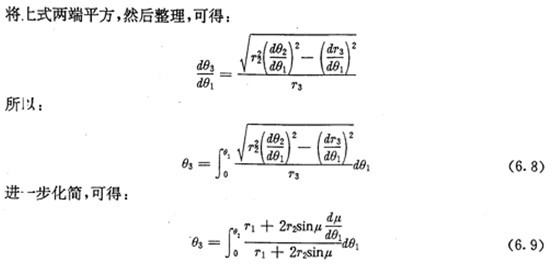 將(6.5)式及(6.9)式聯立,便是內齒圈節曲線的方程。同理,若已知內齒圈節曲線方程,仿上可求得太陽輪節曲線。