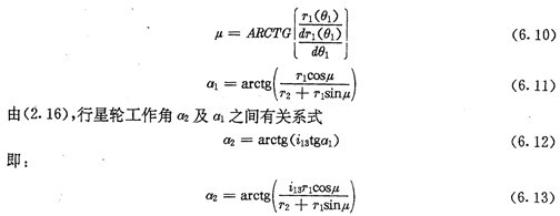 聯立(6.15)式及(6.18)式,便是內齒圈的齒廓方程。內齒圈的齒廓曲線是行星輪節曲線的外包絡線。