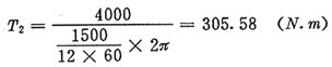 由驅動功率及輸入轉速,可近似(忽略摩擦損失)求得輸出扭矩T2為: