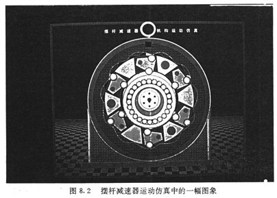 根據上述基本設計參數及各零部件的結構參數,將各主要運動部件的工作過程在計算機屏幕上動態顯示出來。圖8.2是動態仿真過程中的一幀圖象。計算機仿真結果與理論分析完全一致。