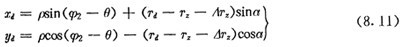 在數控加工過程中,表8.1中極徑Pd的變化是由刀具在x軸上的移動來實現的,而極角θd的變化是由丙齒圈隨工作臺的轉動來實現的,設某兩點間極徑Pd的變化量為△Pd,相應的極角變化量為△θd,則應向x軸發的脈沖數nx可按式(4.4)計算,向C軸發的脈沖數nc按式(4.5)計算。